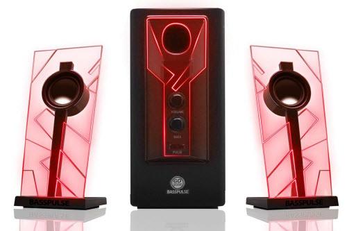 GOgroove BassPULSE 2.1 Computer Speakers with Red LED Glow Lights and Powered Subwoofer